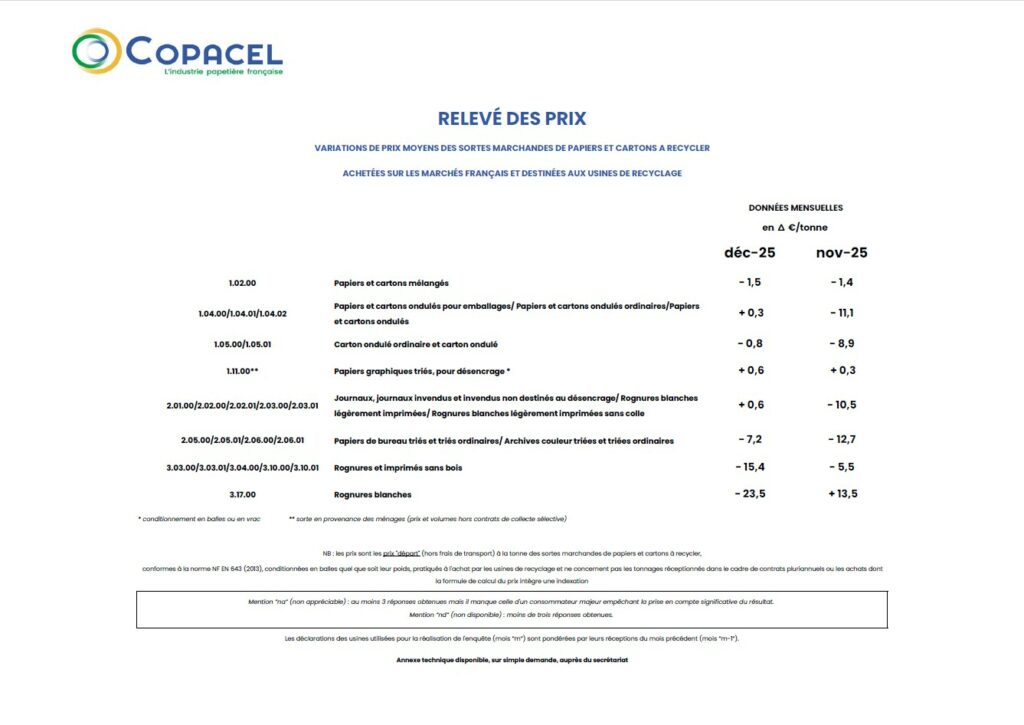N. B. : Le processus de traitement des prix des papiers et cartons à recycler est vérifié par le cabinet indépendant PwC. COPACEL tient à la disposition des tiers l’attestation de PwC portant sur l’année 2020.