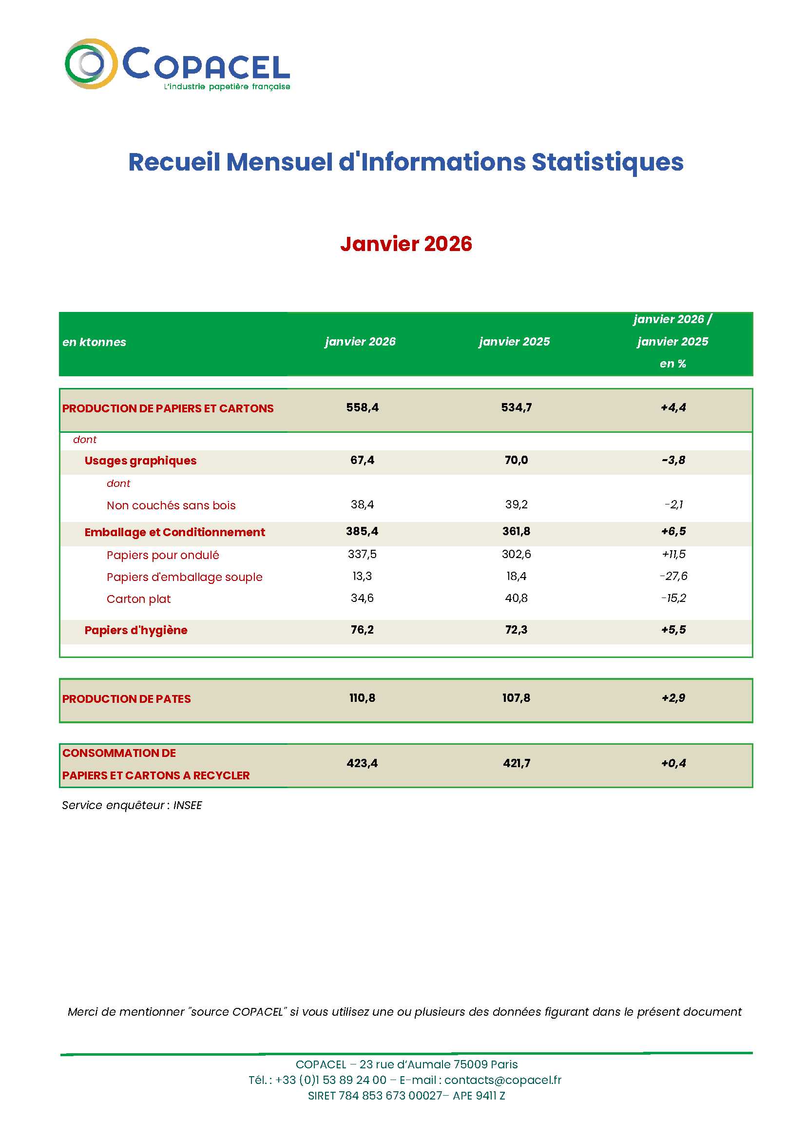 L’Union Française des Industries des Cartons, Papiers et Celluloses (COPACEL) représente les entreprises françaises produisant du papier, du carton et de la pâte de cellulose