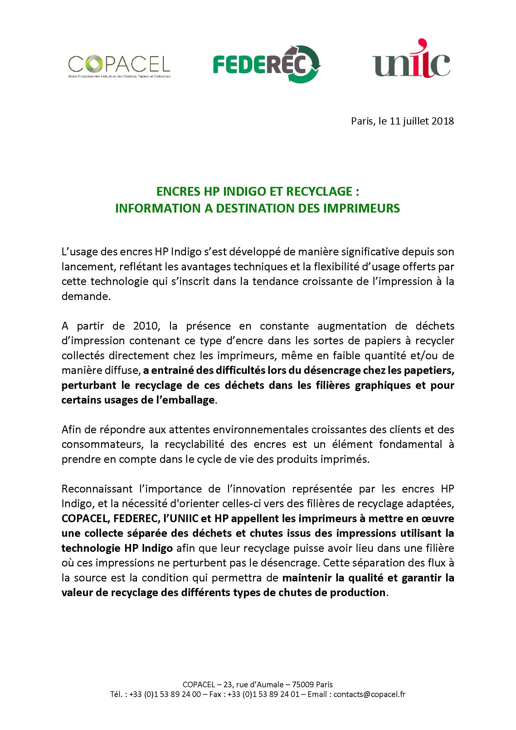 Encres HP Indigo et recyclage